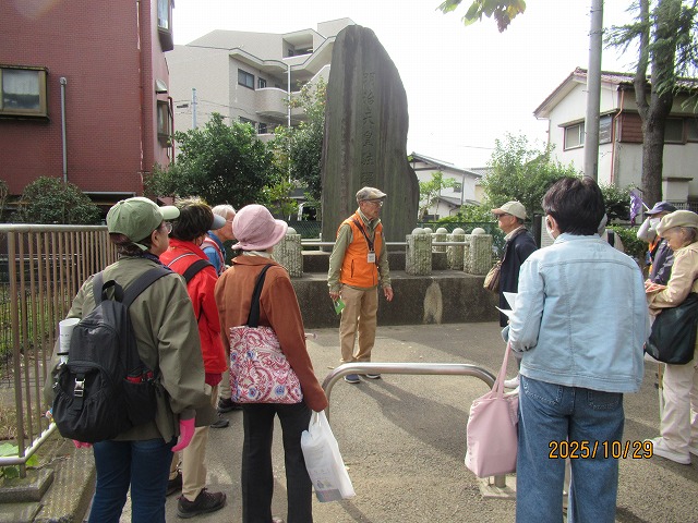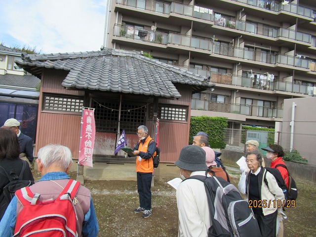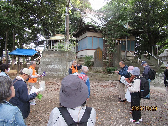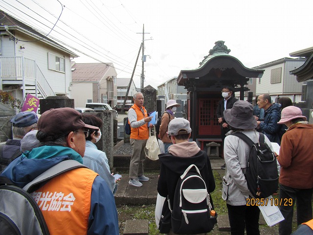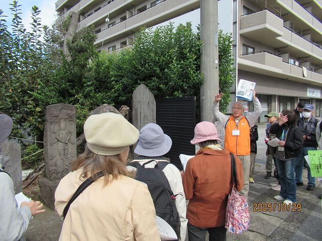 薬園台駅から習志野駅までの道中には、地域の歴史を今に伝える史跡や文化財が点在しており、参加者は熱心に説明を聞きながら見学しました。