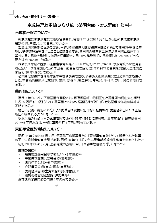 江戸時代の薬園に関わる遺跡や、昭和期の東部軍管区教育隊に関する遺構を中心に巡り、郷土資料館も見学しました。