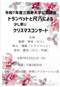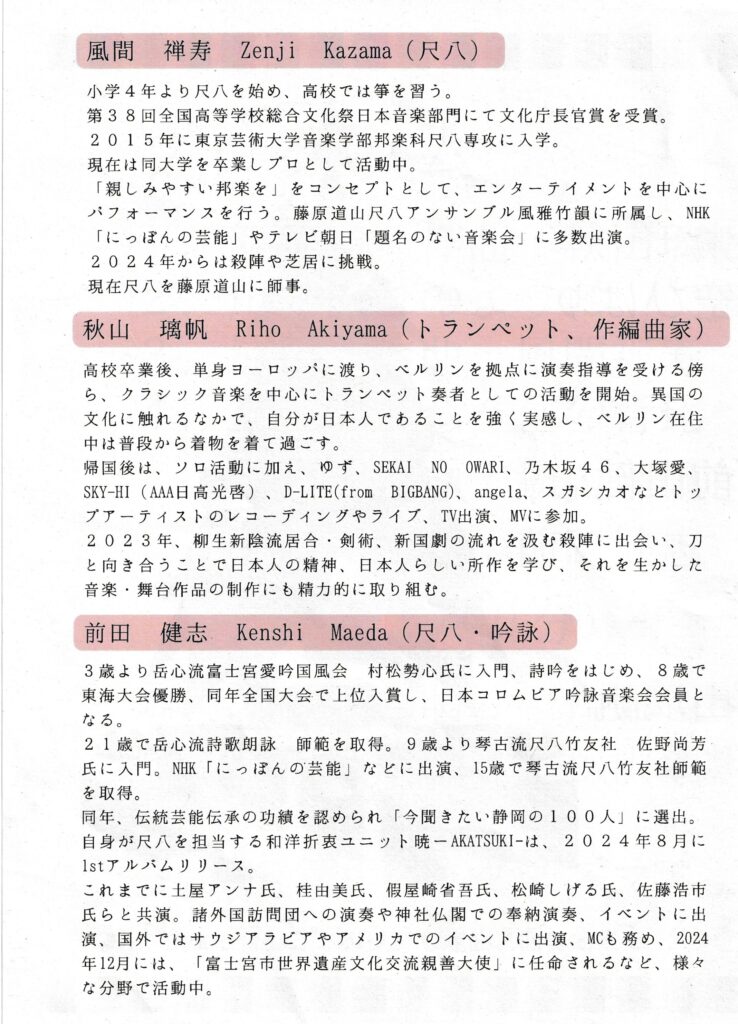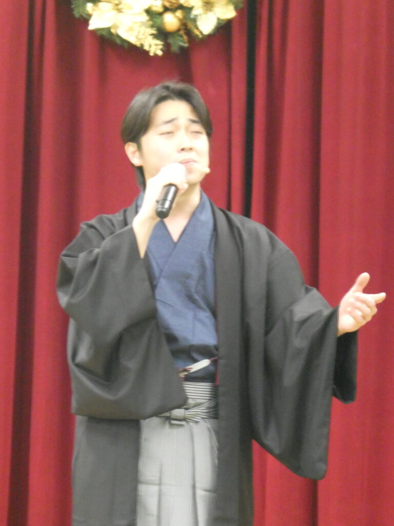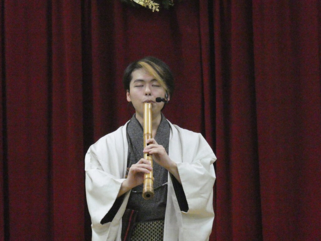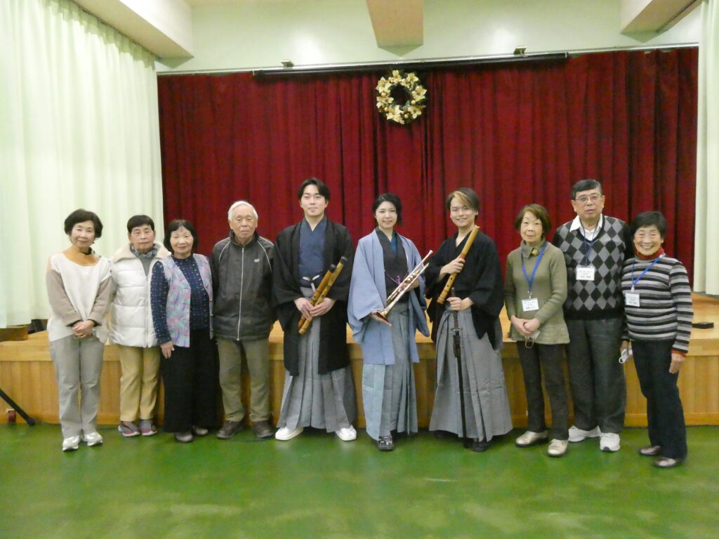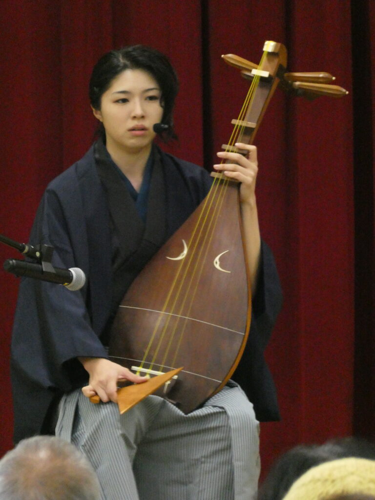 テレビにも出演する音楽家3人による尺八、琵琶、吟詠、殺陣など様々な催しで楽しませて頂きました。